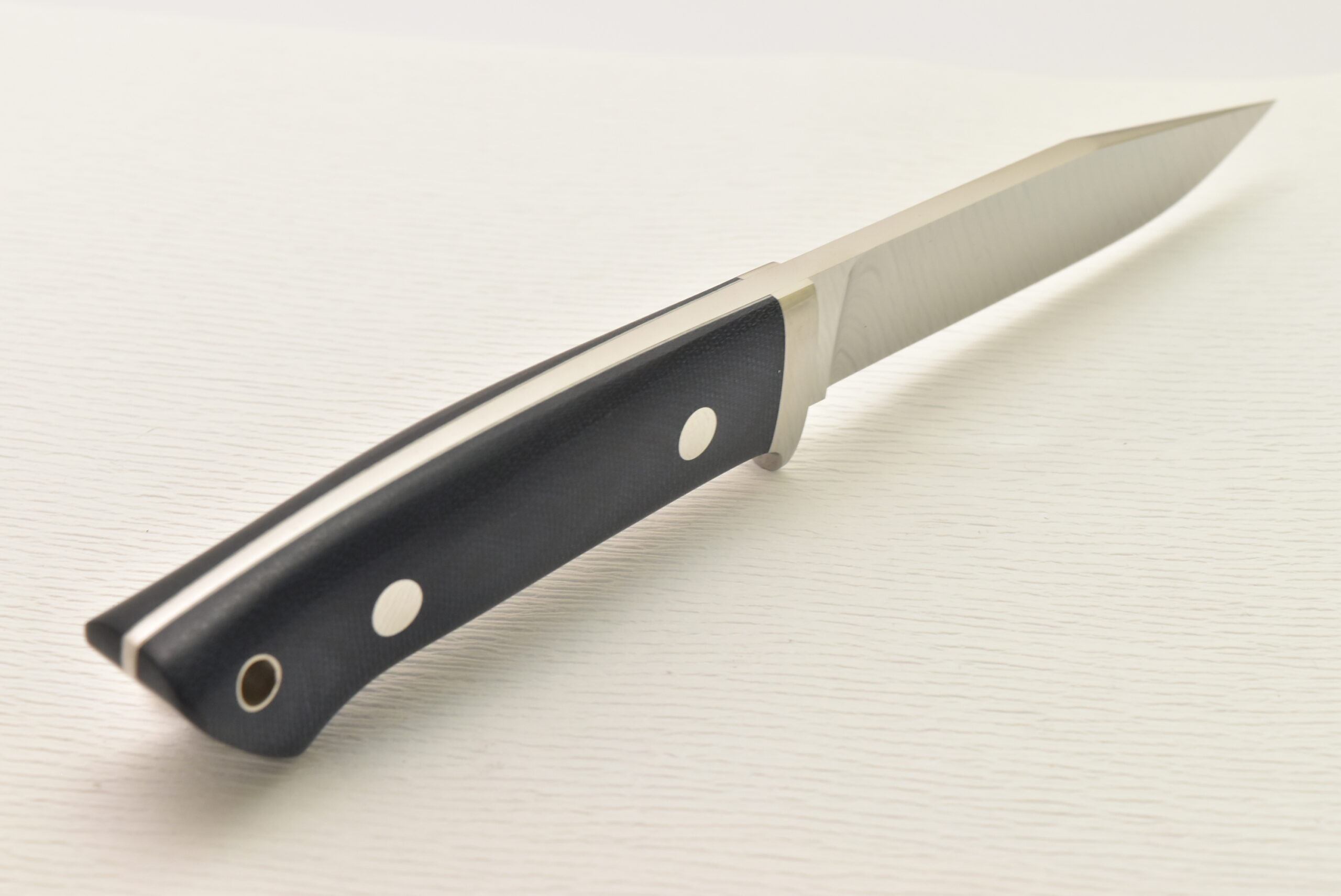 迫力のあるホローグラインド、一点の曇りもないミラーフィニッシュ、バランス抜群のテーパータング、吸い付くようなハンドルシェイプ、ぜひ相田義人会心の出来の5”ブレードのユーティリティを。